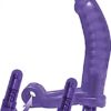 If you've always fantasized about double penetration but never had the chance to give it a try, the Double Penetrator Rabbit Cock Ring is going to make everything much simpler. To start off with, the ring provides a firm, yet comfortable, fit around the penis to enhance his erection and increase his staying power. Attached to the ring is a small, 5.25" dildo attachment that's fully bendable to allow for easy penetration no matter the angle. As if that wasn't enough, this sex toy comes with two, wireless, vibrating bullets for even more pleasure. Each is separately controlled, and each can be removed from the toy for other "uses" you might think up. One bullet was designed to go right in the base for anal stimulation while the second bullet has a home on the opposing side above the ring for testicular or clitoral stimulation. For easy cleaning and flexible play times, the Double Penetrator Rabbit Cock Ring is fully waterproof. No matter your color preference, this toy is available in red or purple for the perfect fit. To power the two wireless bullets, this toy requires 6 watch batteries. For your convenience, all 6 batteries are included.