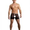 Male Power Specialty Mens Underwear Extreme Double Exposure Black L/XL. Short features pouchless front with metal ring detail, cutout back with metal ring detail and cire waistband and trim. Mne's sizes large to extra large waist 36 inches to 42 inches.
