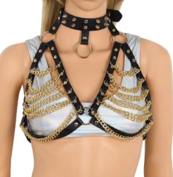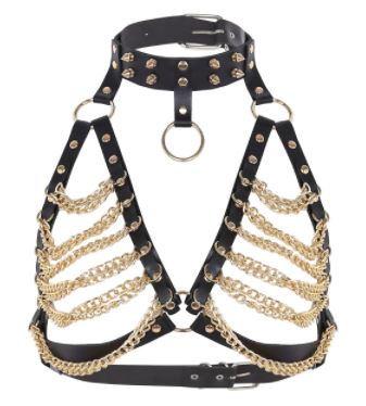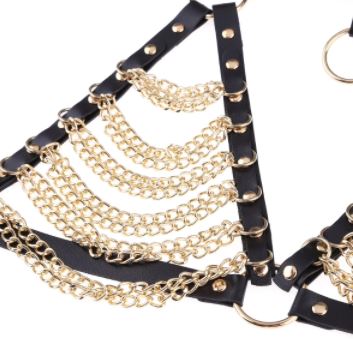 Women Leather Bondage Harness Chain Belt Straps Sexy Harness Adjustable Lingerie Bra