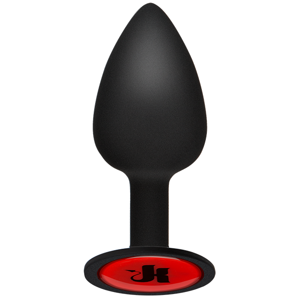 Kink Signature Plug 3 Inch Wearable Butt Plug. Show where your loyalties lie with the Kink Signature Plug in black premium silicone. The rounded plug and thick stem flex just enough to comfortably slide in, leading to a kinky surprise set securely into the flared base: Kink.com's iconic red devil K logo. This classic spade shaped butt plug is crafted with a pointed tip for easy ion and an extreme curve for that perfect sensation of being filled. Features: Slim Tapered Tip Official Kink Logo Set into Base. Pliable Black Silicone. Hypoallergenic phthalate free, body safe. Dimensions: total length 3 inches, insertable, usable length 2.5 inches, width, diameter 1 inch, circumference 3.75 inches.
