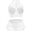Premiere Embroidered Halter Bra & Panty White Large