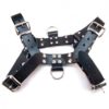 From Rouge Leather. Fully adjustable buckle straps with studs. Contains a D-Ring on the front and one on the back for multiple attachments. Men size large. Chest 41 inches to 42 inches.