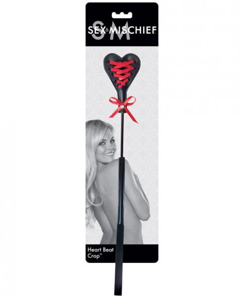 This sexy Crop is sure to win you some hearts with its flirty heart shaped crop head. Features a sexy red corset style lace up and a sparkling faux diamond bling. From Sportsheets.